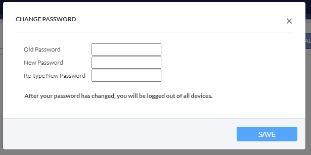 The change password module will pop up, input your old password and your new password. Click the "Save" button to save your new password