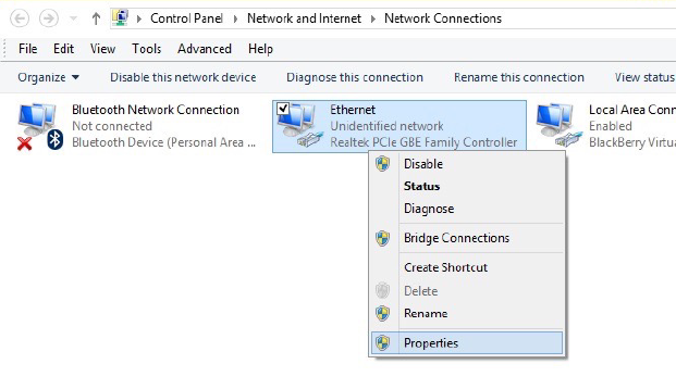 Right-click the connection you want and select Properties (if an administrator password or confirmation is required, enter your details)