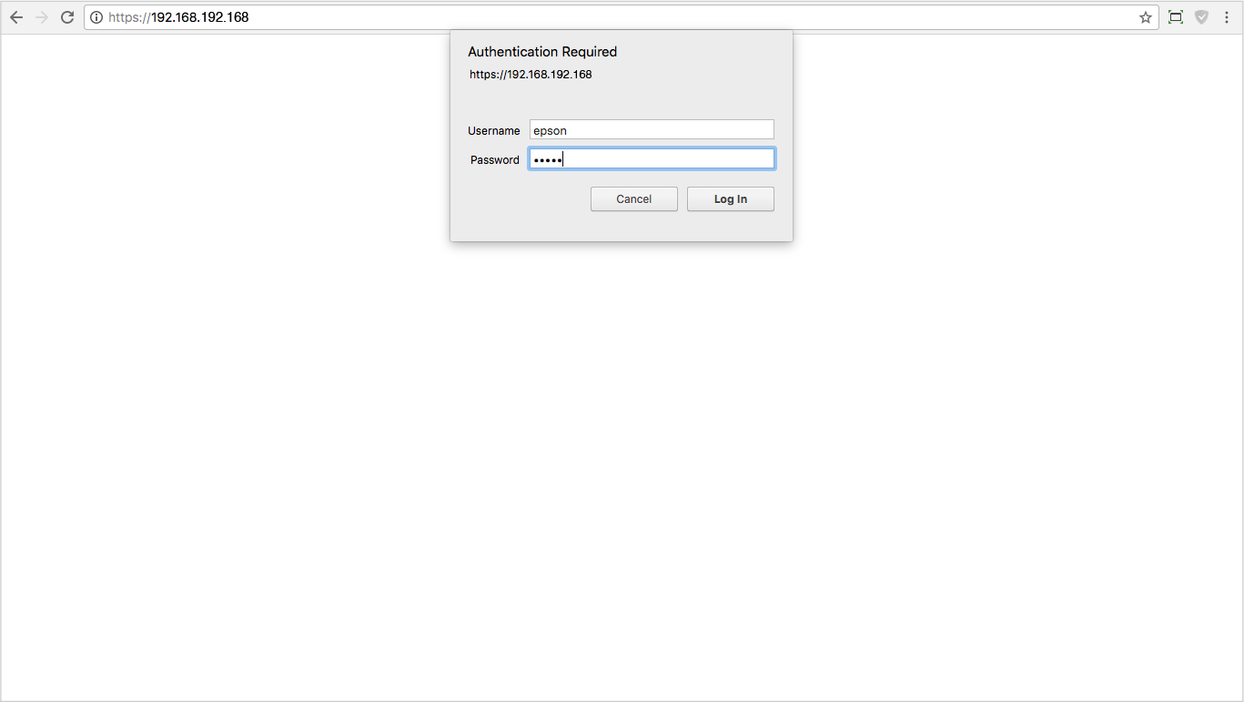 c. Click Log In to continue. You will be redirected to the printer's configuration screen.