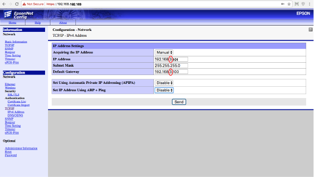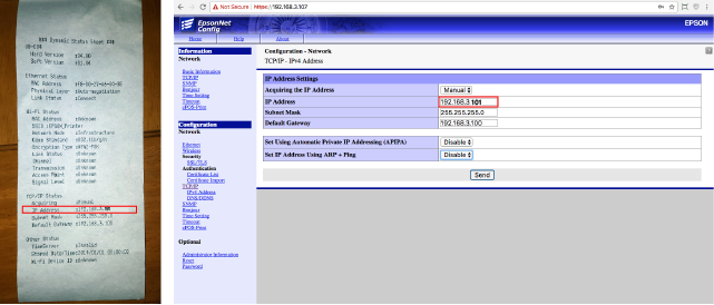 In this example, we changed the value of the printer IP address' last field to ".101", to indicate "Printer 1" as a personal preference. Should we add another printer in the future, we could tag the second printer as ".102" for simpler identification.