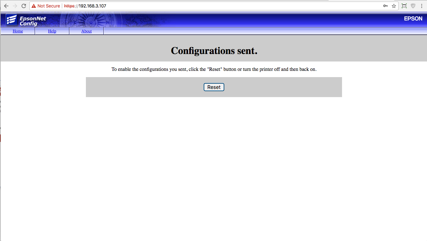 f. You will be prompted to reset your printer. Click the 'Reset' button on the screen or follow the instructions as written on the screen.