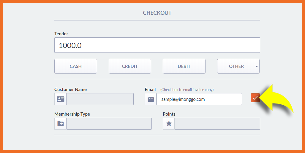 2\. Under **CHECKOUT** tab, input the email address of the customer and **check** the box beside.