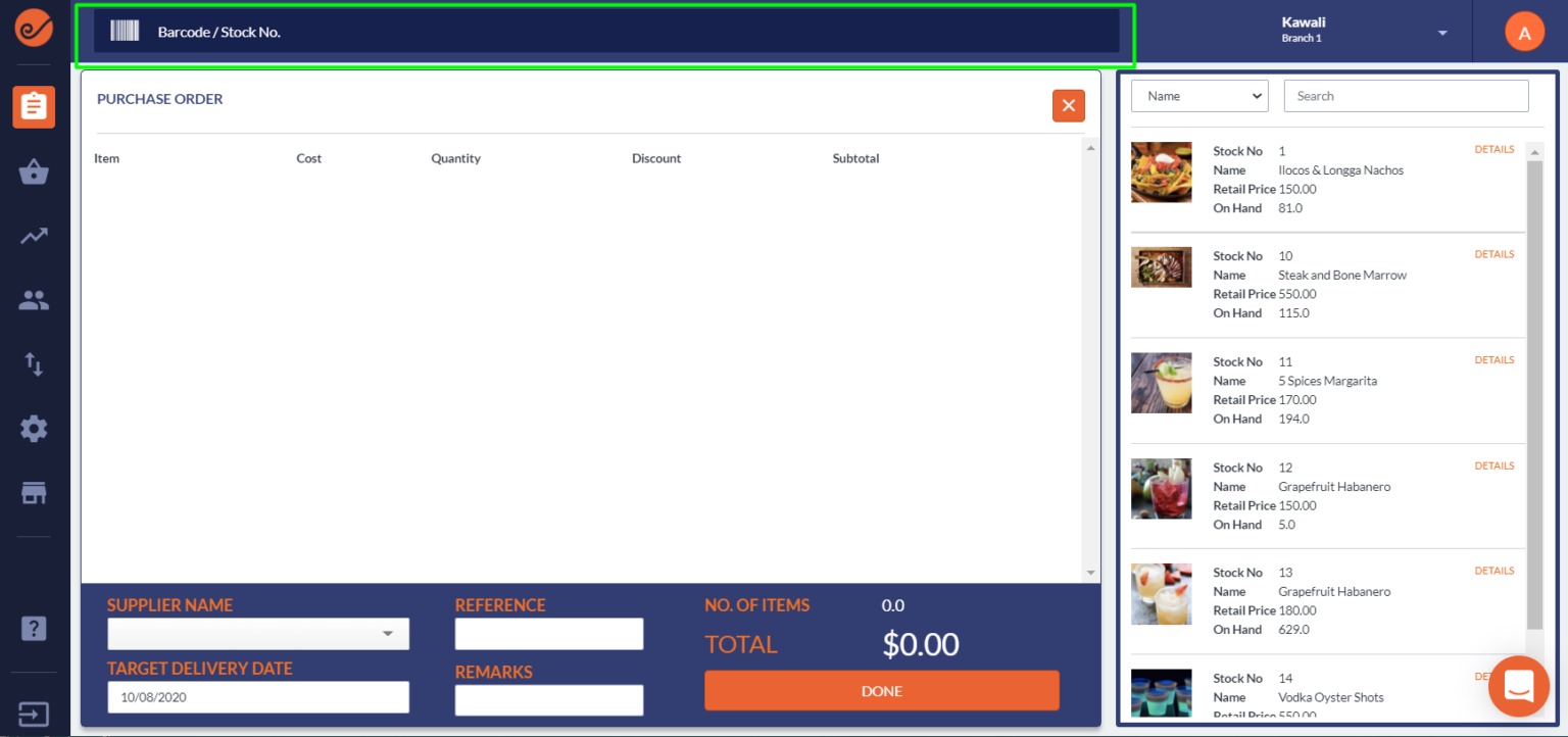 Once you finalize all the details, click the **DONE** button to create a pending P.O document. You should see the pending purchase order on the list.