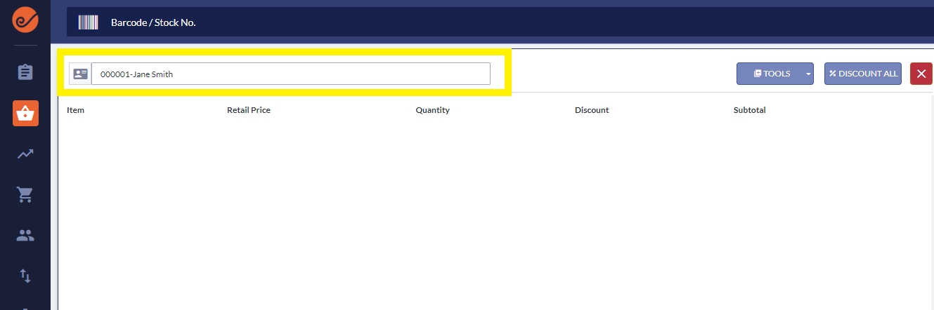 To create a layaway transaction, you should select a customer on the upper left corner in the store.