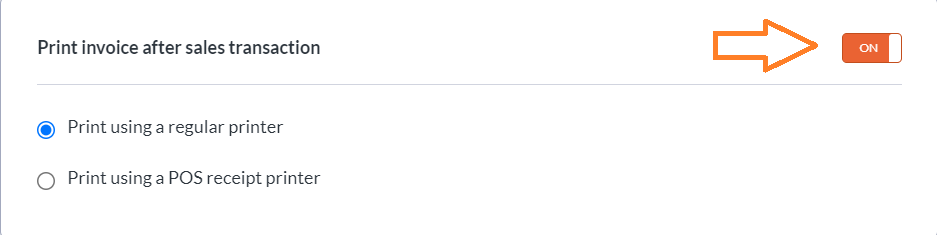 Switch **ON** your Print Invoice after Sales Transaction.&#x20;