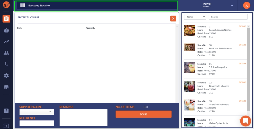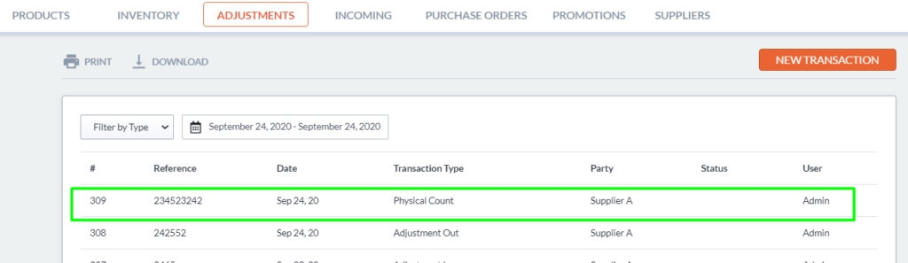 The Physical Count lets you records the actual count of your inventory. The final quantity of the product will match the quantity you entered during this transaction.