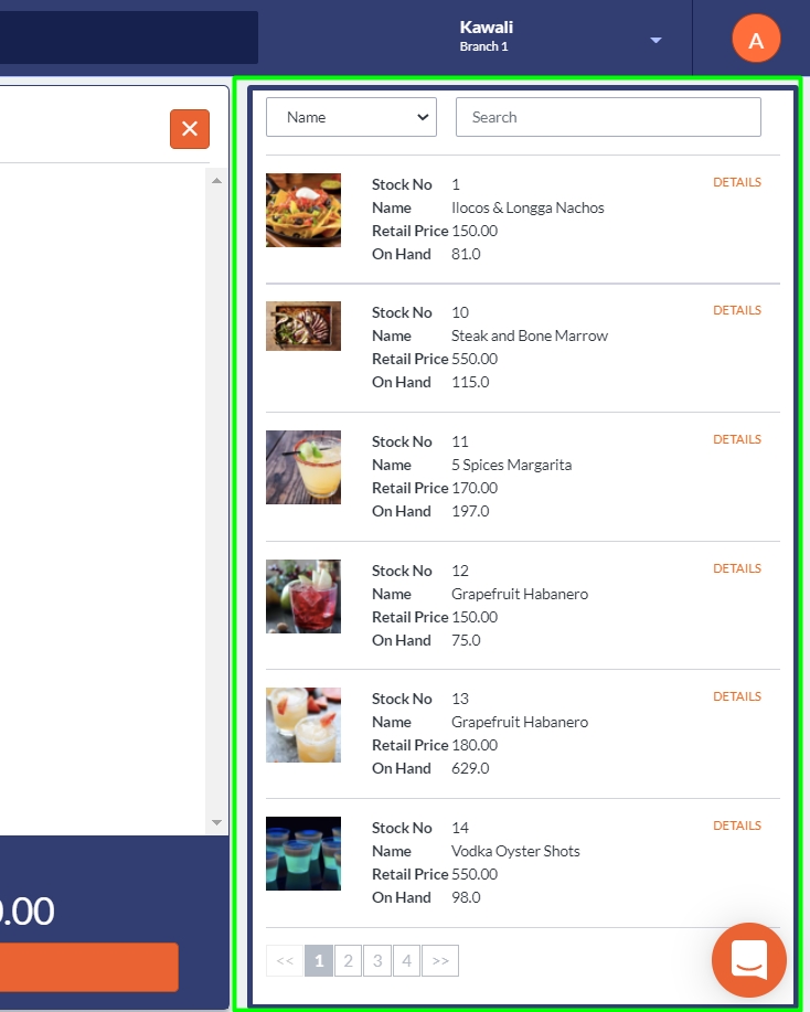 Or you can find the item from the product list panel on the right side of the screen.
