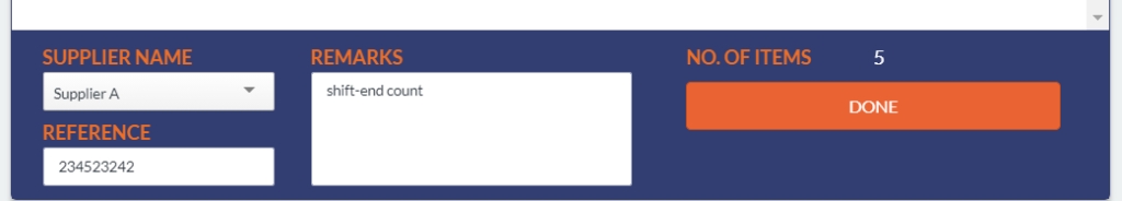 The next page will let you record the transaction. To choose an item, scan the barcode or enter the stock number on the search field above to add the product to the list.