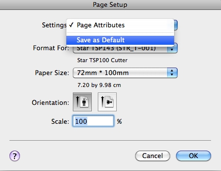 Make sure to choose the appropriate paper size. For receipt printer, the typical paper size is 72x100mm